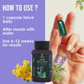 Take one capsule twice daily with water, preferably after meals, or as advised by your healthcare provider. Consistent usage over a period of 6 to 12 weeks is recommended for noticeable results.